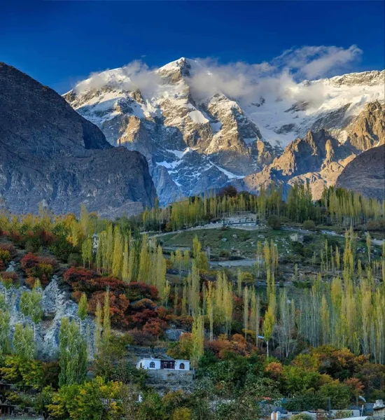 Hunza Valley is known for its dramatic mountain views, vibrant culture, and peaceful environment. Surrounded by Rakaposhi, Ultar Sar, and Ladyfinger Peak, the valley offers a blend of history and nature.
